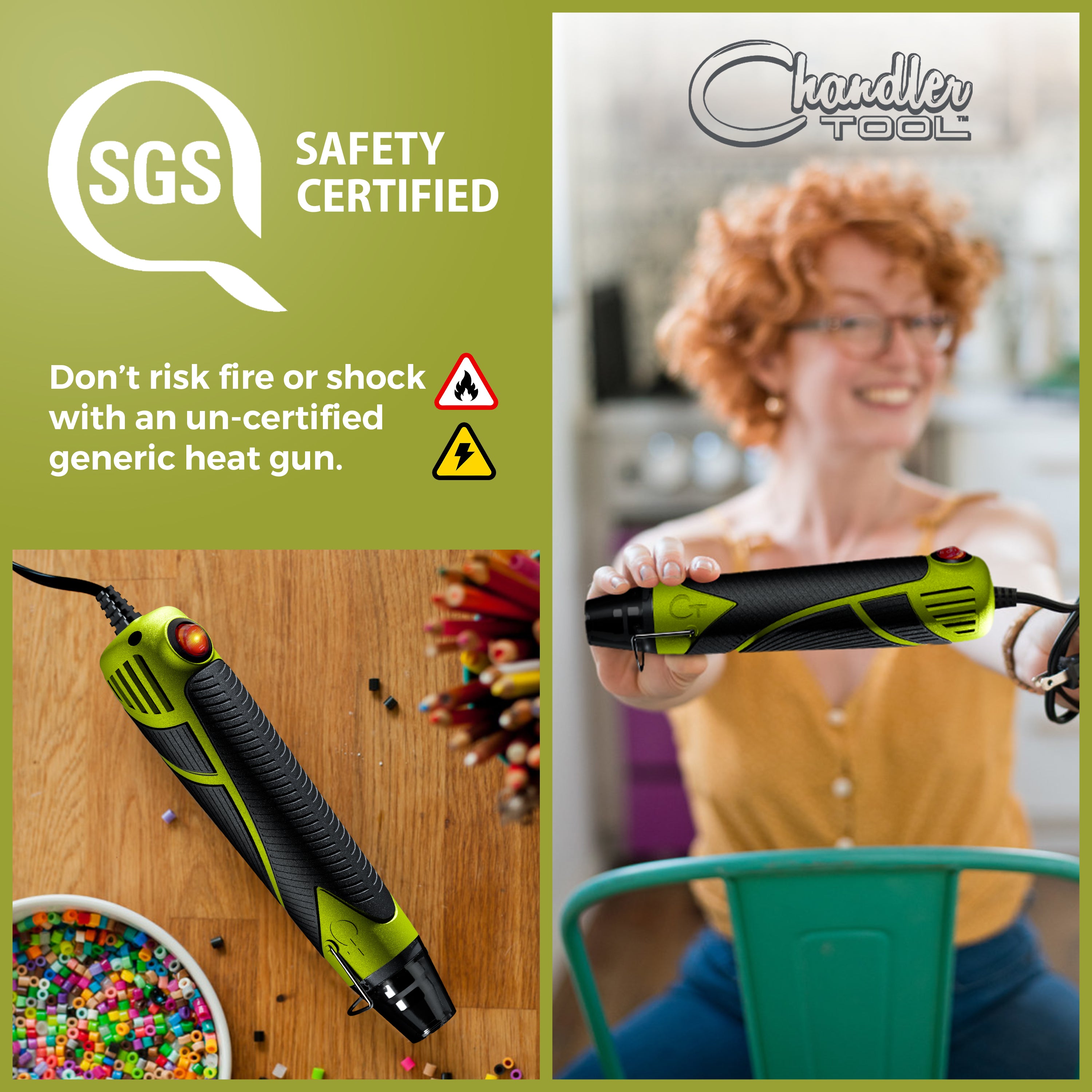 • UL-CERTIFIED – Our glue guns are all UL certified. It’s kind of a big deal...which means as much as we like making an impact, we don’t want to shock, burn, or set things ablaze. For those that do not know, UL stands for Underwriters Laboratories; the industry standard for North American safety certification. UL Certification ain’t cheap, but we’re proud to say we won’t sell a heat gun without it.