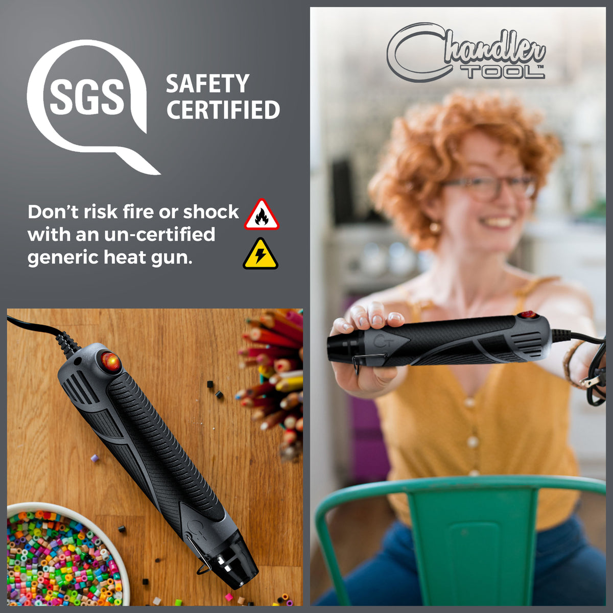 - UL-CERTIFIED – Our glue guns are all UL certified. It’s kind of a big deal...which means as much as we like making an impact, we don’t want to shock, burn, or set things ablaze. For those that do not know, UL stands for Underwriters Laboratories; the industry standard for North American safety certification. UL Certification ain’t cheap, but we’re proud to say we won’t sell a heat gun without it.