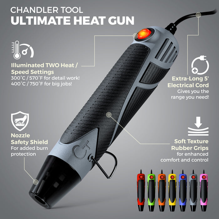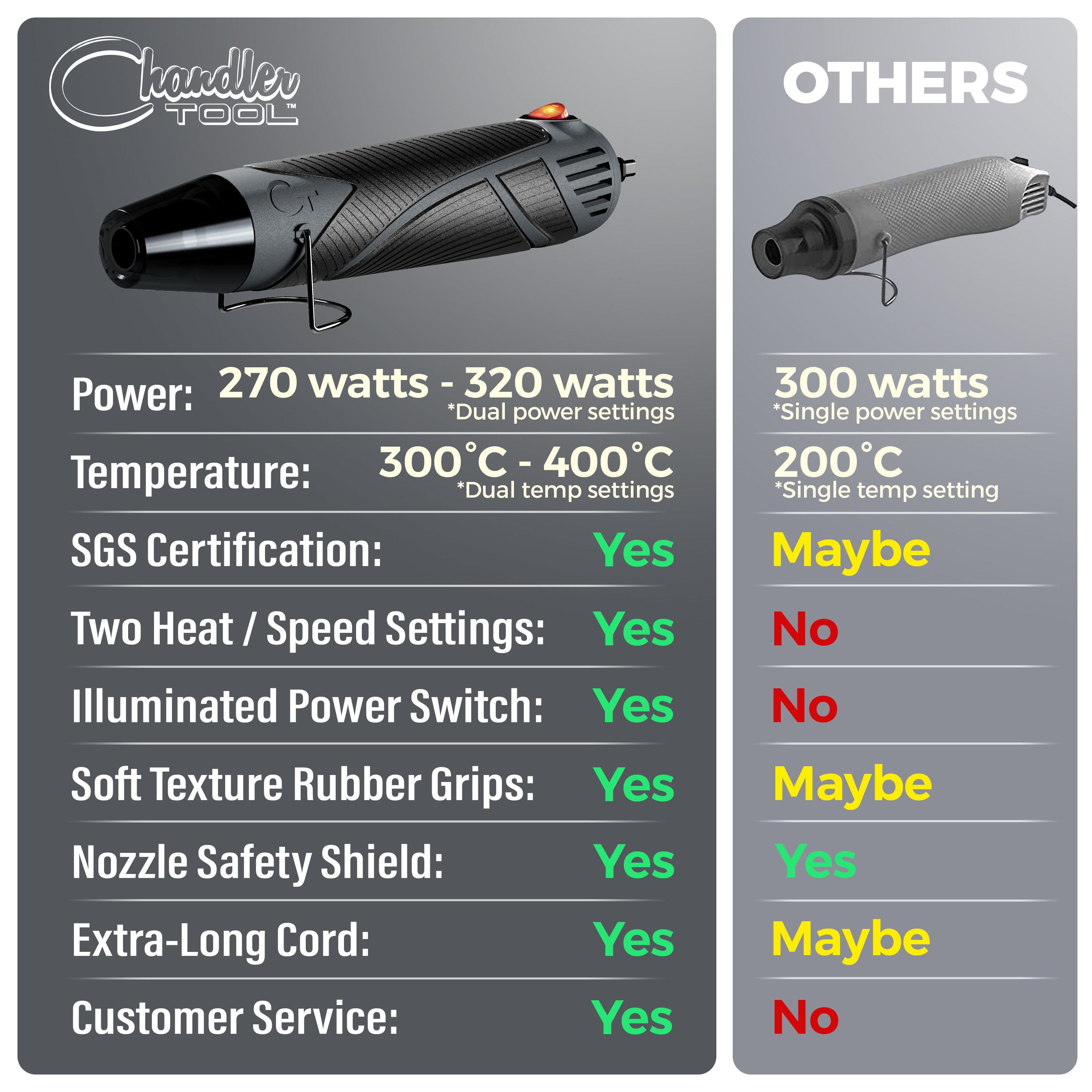 - DURABLE: As with any partner, you want them to last; to be strong when you need help, and soft when you just want a hug. The same goes for a trusted heat gun. Our heat gun is designed with an insulated body to keep the heat at bay from your hands. Paired with a comfort grip that should make working with this tool easier than ever.