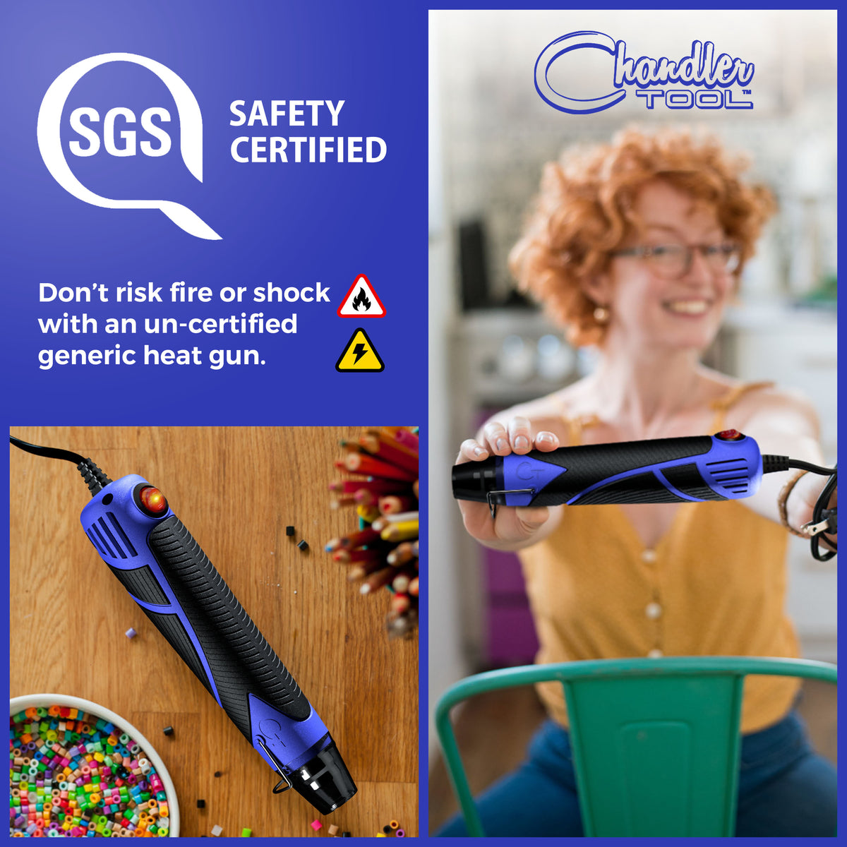 • UL-CERTIFIED – Our glue guns are all UL certified. It’s kind of a big deal...which means as much as we like making an impact, we don’t want to shock, burn, or set things ablaze. For those that do not know, UL stands for Underwriters Laboratories; the industry standard for North American safety certification. UL Certification ain’t cheap, but we’re proud to say we won’t sell a heat gun without it.